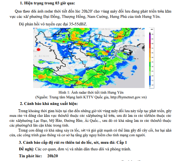 TIN CẢNH BÁO DÔNG, TỐ, LỐC, SÉT, MƯA ĐÁ VÀ MƯA LỚN CỤC BỘ TRÊN KHU VỰC TỈNH HƯNG YÊN NGÀY 06/10/2025 (LẦN 3)