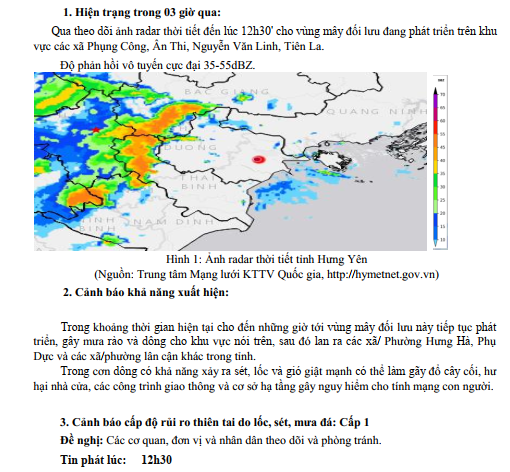 TIN CẢNH BÁO DÔNG, TỐ, LỐC, SÉT, MƯA ĐÁ VÀ MƯA LỚN CỤC BỘ TRÊN KHU VỰC TỈNH HƯNG YÊN NGÀY 9/9/2025
