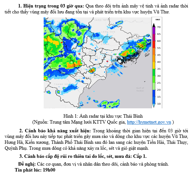 TIN CẢNH BÁO DÔNG, TỐ, LỐC, SÉT, MƯA ĐÁ VÀ MƯA LỚN CỤC BỘ TRÊN KHU VỰC TỈNH THÁI BÌNH NGÀY 02/7/2024 (Lần 1)