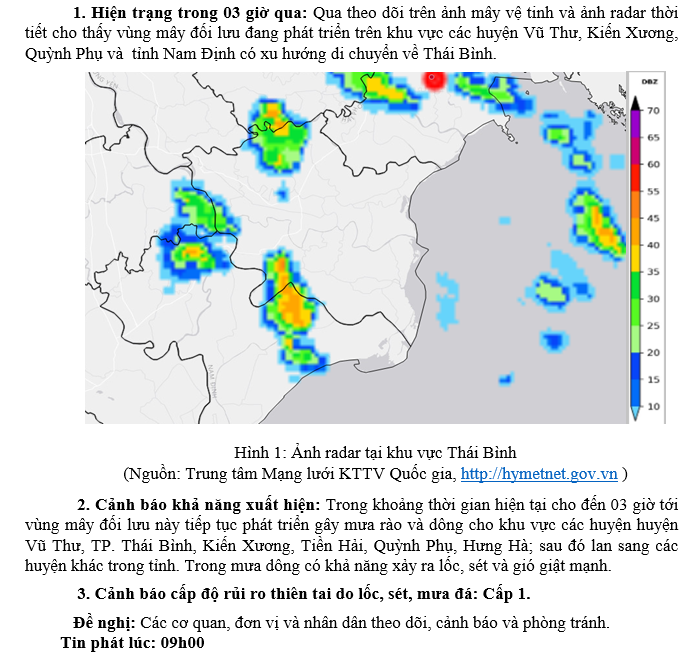 TIN CẢNH BÁO DÔNG, TỐ, LỐC, SÉT, MƯA ĐÁ VÀ MƯA LỚN CỤC BỘ TRÊN KHU VỰC TỈNH THÁI BÌNH NGÀY 04/7/2024 (Lần 2)