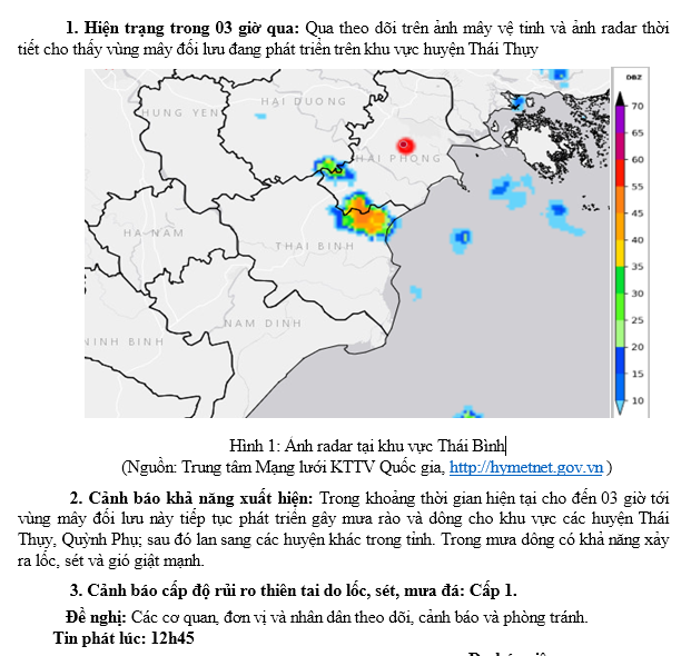 TIN CẢNH BÁO DÔNG, TỐ, LỐC, SÉT, MƯA ĐÁ VÀ MƯA LỚN CỤC BỘ TRÊN KHU VỰC TỈNH THÁI BÌNH NGÀY 04/7/2024 (Lần 3)