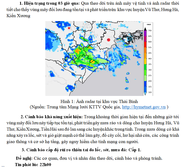 TIN CẢNH BÁO DÔNG, TỐ, LỐC, SÉT, MƯA ĐÁ VÀ MƯA LỚN CỤC BỘ TRÊN KHU VỰC TỈNH THÁI BÌNH (Ngày 05/4/2025 - Lần 1)