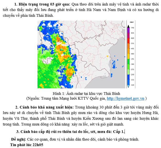 TIN CẢNH BÁO DÔNG, TỐ, LỐC, SÉT, MƯA ĐÁ VÀ MƯA LỚN CỤC BỘ TRÊN KHU VỰC TỈNH THÁI BÌNH NGÀY 09/6/2024( Lần 5)