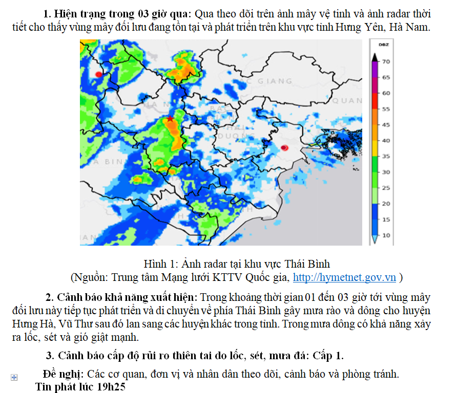 TIN CẢNH BÁO DÔNG, TỐ, LỐC, SÉT, MƯA ĐÁ VÀ MƯA LỚN CỤC BỘ TRÊN KHU VỰC TỈNH THÁI BÌNH NGÀY 10/6/2024( Lần 3)