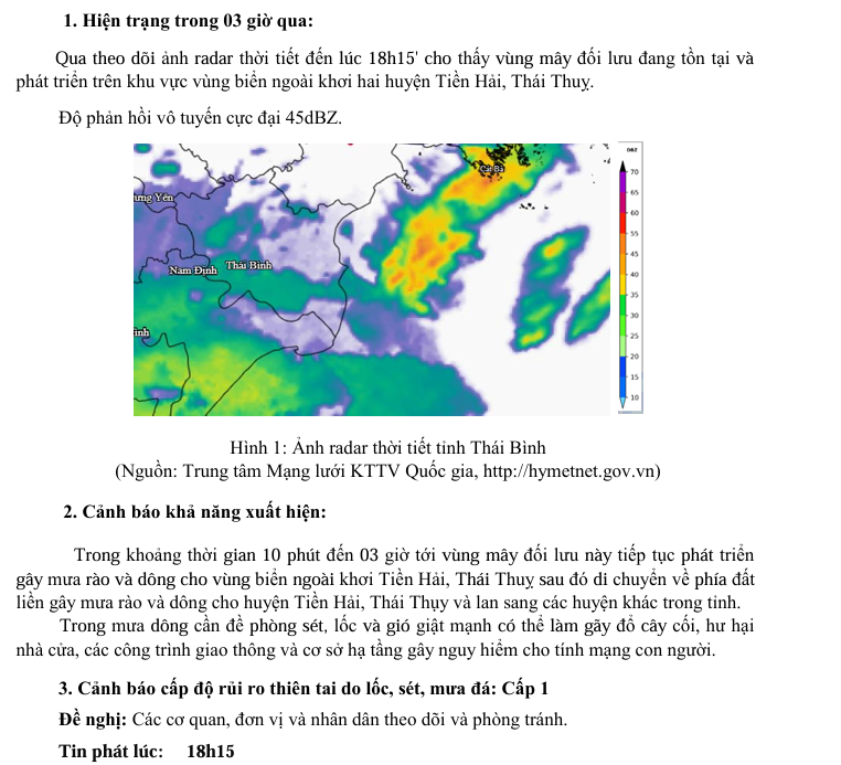TIN CẢNH BÁO DÔNG, TỐ, LỐC, SÉT, MƯA ĐÁ VÀ MƯA LỚN CỤC BỘ TRÊN KHU VỰC TỈNH THÁI BÌNH (Ngày 12/4/2025 - Lần 2)