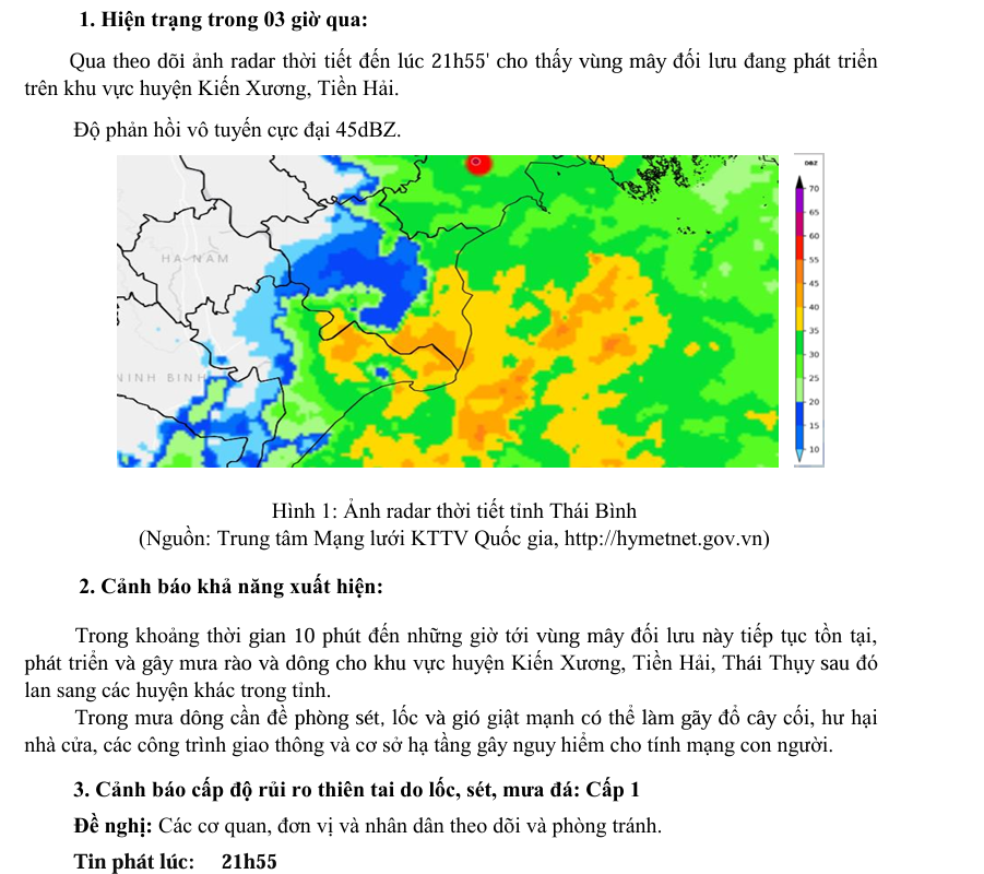 TIN CẢNH BÁO DÔNG, TỐ, LỐC, SÉT, MƯA ĐÁ VÀ MƯA LỚN CỤC BỘ TRÊN KHU VỰC TỈNH THÁI BÌNH (Ngày 12/4/2025 - Lần 3)