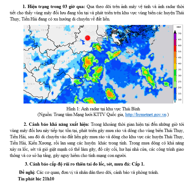 TIN CẢNH BÁO DÔNG, TỐ, LỐC, SÉT, MƯA ĐÁ VÀ MƯA LỚN CỤC BỘ TRÊN KHU VỰC TỈNH THÁI BÌNH NGÀY 17/9/2024 (Lần 3)