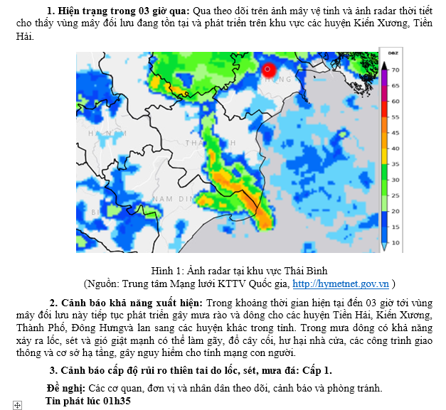 TIN CẢNH BÁO DÔNG, TỐ, LỐC, SÉT, MƯA ĐÁ VÀ MƯA LỚN CỤC BỘ TRÊN KHU VỰC TỈNH THÁI BÌNH NGÀY 19/9/2024 (Lần 4)