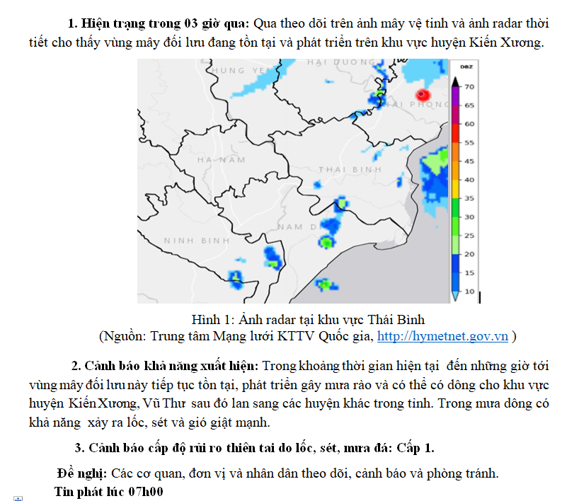 TIN CẢNH BÁO DÔNG, TỐ, LỐC, SÉT, MƯA ĐÁ VÀ MƯA LỚN CỤC BỘ TRÊN KHU VỰC TỈNH THÁI BÌNH NGÀY 21/6/2024 (Lần 1)