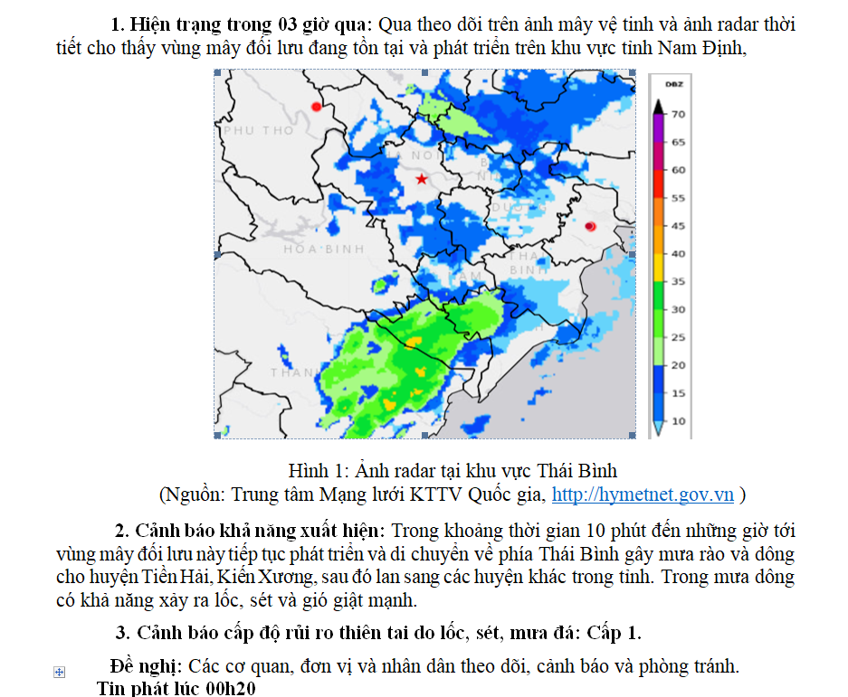 TIN CẢNH BÁO DÔNG, TỐ, LỐC, SÉT, MƯA ĐÁ VÀ MƯA LỚN CỤC BỘ TRÊN KHU VỰC TỈNH THÁI BÌNH NGÀY 22/5/2024( Lần 1 )