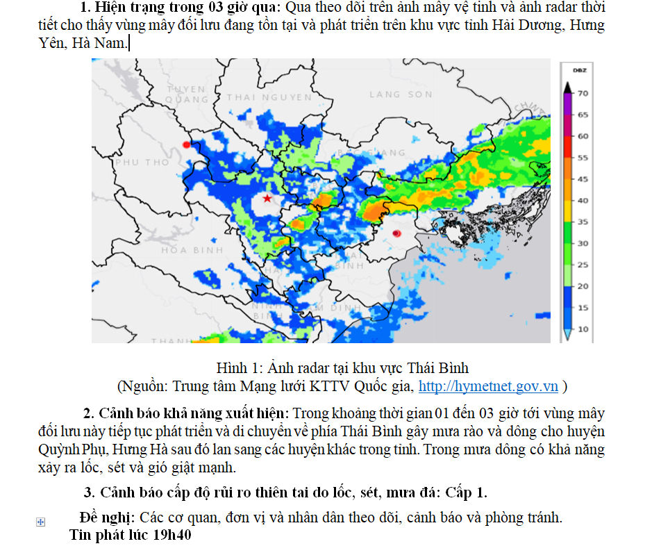 TIN CẢNH BÁO DÔNG, TỐ, LỐC, SÉT, MƯA ĐÁ VÀ MƯA LỚN CỤC BỘ TRÊN KHU VỰC TỈNH THÁI BÌNH NGÀY 22/5/2024( Lần 4 )