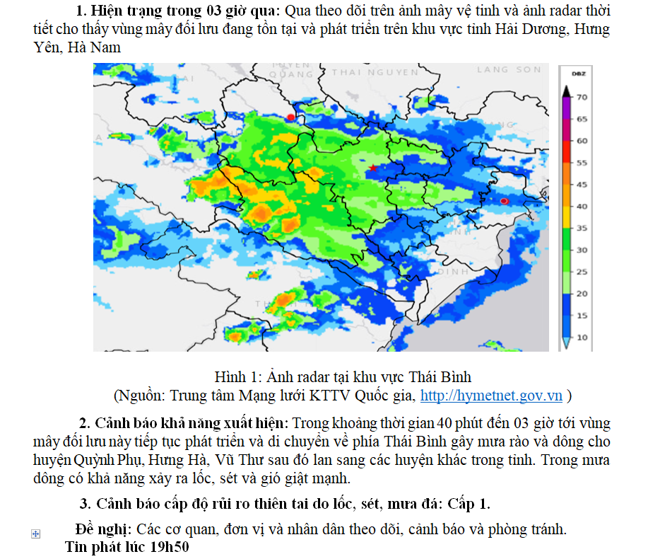 TIN CẢNH BÁO DÔNG, TỐ, LỐC, SÉT, MƯA ĐÁ VÀ MƯA LỚN CỤC BỘ TRÊN KHU VỰC TỈNH THÁI BÌNH NGÀY 24/5/2024( Lần 4)