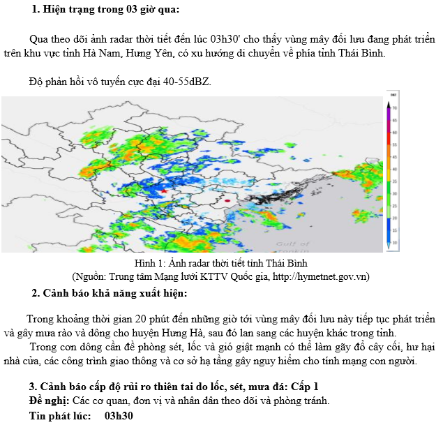 TIN CẢNH BÁO DÔNG, TỐ, LỐC, SÉT, MƯA ĐÁ VÀ MƯA LỚN CỤC BỘ TRÊN KHU VỰC TỈNH THÁI BÌNH (Ngày 24/5/2025 - Lần 1)