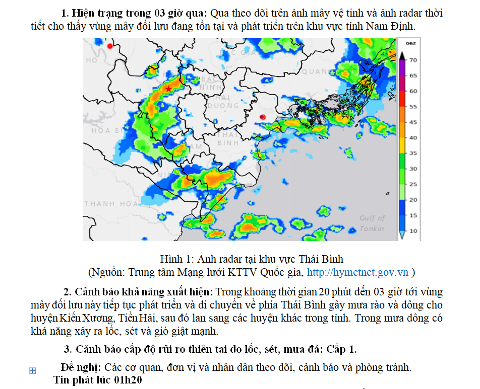 TIN CẢNH BÁO DÔNG, TỐ, LỐC, SÉT, MƯA ĐÁ VÀ MƯA LỚN CỤC BỘ TRÊN KHU VỰC TỈNH THÁI BÌNH NGÀY 24/6/2024 (Lần 1)