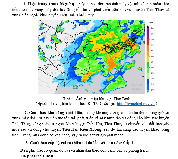 TIN CẢNH BÁO DÔNG, TỐ, LỐC, SÉT, MƯA ĐÁ VÀ MƯA LỚN CỤC BỘ TRÊN KHU VỰC TỈNH THÁI BÌNH NGÀY 25/6/2024 (Lần 3)