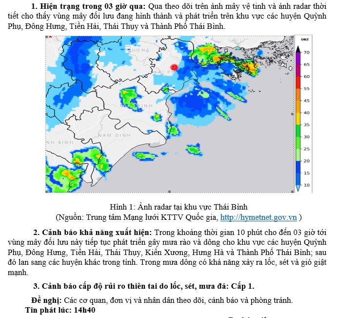 TIN CẢNH BÁO DÔNG, TỐ, LỐC, SÉT, MƯA ĐÁ VÀ MƯA LỚN CỤC BỘ TRÊN KHU VỰC TỈNH THÁI BÌNH NGÀY 26/6/2024 (Lần 4)