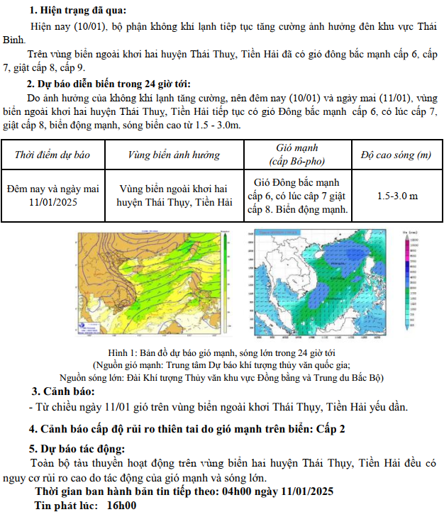 TIN DỰ BÁO GIÓ MẠNH, SÓNG LỚN TRÊN VÙNG BIỂN TỈNH THÁI BÌNH