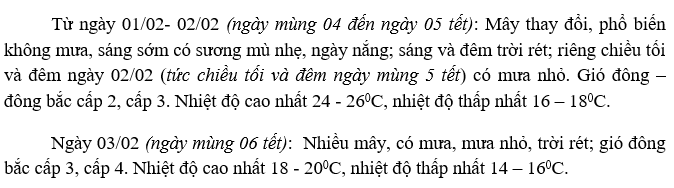 DỰ BÁO THỜI TIẾT TẾT NGUYÊN ĐÁN ẤT TỴ KHU VỰC THÁI BÌNH TỪ NGÀY 01/02 – 03/02/2025 (TỪ NGÀY MÙNG 04 ĐẾN MÙNG 06 TẾT)